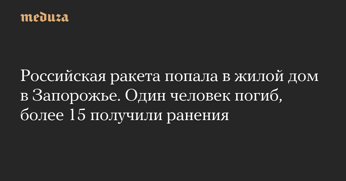 **Ключевая проблема:** Основная тема данной новости — ракетный удар, нанесенный вооруженными силами Российской Федерации по городу Запорожье, который привел к человеческим жертвам и ранениям среди гражданского населения. **Контекст:** Для понимания этой новости важно учитывать текущую ситуацию в Украине, где продолжается конфликт между Россией и Украиной. Запорожье — один из городов, находящихся в зоне боевых действий, и подобные атаки стали частью более широкой военной стратегии. **Текущий impacto:** В результате ракетного удара погиб один человек, а 16 получили ранения, в том числе ребенок. Это подчеркивает гуманитарные последствия конфликта, затрагивающие мирных жителей и создающие дополнительные проблемы для служб экстренной помощи. **Контроверзии:** Существуют разные мнения относительно оправданности военных действий, проводимых Россией. Некоторые утверждают, что это необходимо для защиты своих интересов, в то время как другие считают такие действия агрессией и нарушением международного права. Также возникает вопрос о последствиях для гражданского населения и необходимости защиты мирных жителей. **Будущие последствия:** В результате этого инцидента могут возникнуть новые эскалации конфликта, усиление международных санкций против России и возможные призывы к более активным действиям со стороны международного сообщества для защиты Украины. Это также может повлиять на внутреннюю политику как в России, так и в Украине, а также на общественное мнение о конфликте.
